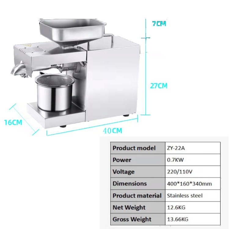 | Usage | For sunflower seeds, rapeseed, tea seeds, sesame seeds | Type | Oil press |
