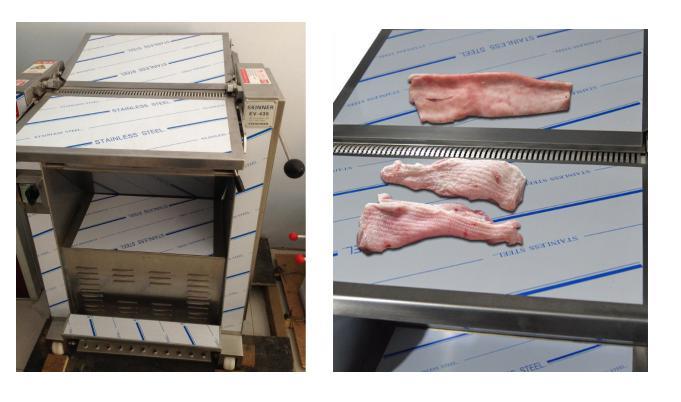 猪皮剥离机专门设计用剥离装置分离sebum分离设备适合采掘各种肉类,不食用肉类,并有良好的分离效果产品美美,刀片可调试,采掘厚度可随时调整